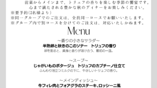 ロッシーニコースは2名様より、1グループ同一メニュー注文で承ります。